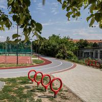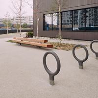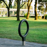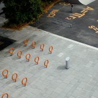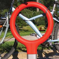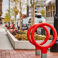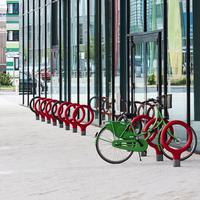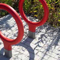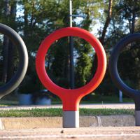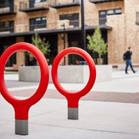 The Key bike rack—designed by La Granja for Urbidermis—with its cast aluminum base and steel loop frame finished in vibrant high-density polyurethane foam, is a winner – literally. Recipient of both a prestigious Red Dot Award and an IDEA Bronze Award, this simple and lighthearted bike rack updates an essential urban element with new spirit.