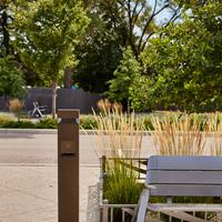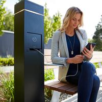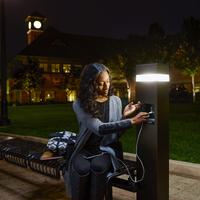 Outdoor Power by Legrand is a family of mobile device charging stations that enable people to plug in and recharge in the outdoor environments where they live, learn, work, care, play and travel. The Charging Station with Area Light is a 49 in tall unit that includes an LED luminaire for safe and confidence inspiring lighting along pathways.