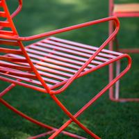 Garden party tasteful and college campus tough, the Parc Centre Lounge and Ottoman expand our collection of movable furniture to create versatile social spaces. An elegant sweeping back curve provides just the right balance between lounging and upright positions, so sitters can lean back and still carry on a conversation, read or work on a laptop.