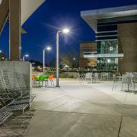The deck of the Hub South has become the highlight of the building. Beyond its amazing views of the city and the mountains, Landscape Forms site furniture and custom benches offer something new for tenants and employees.