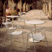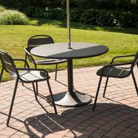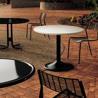 Round tops feature a rolled edge and are available in 30 in., 36 in., or 42 in. diameters
