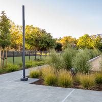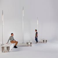 Typology Stick Lights break from lighting tradition such that the pole itself is one solid source of light. These vertical columns of warm white light stake claim to the site, accompanying the ribbon bench across its diverse configurations, and creating prominent visual landmarks that draw people into the site.