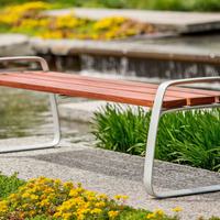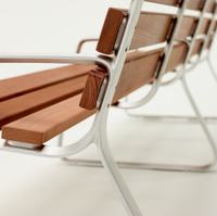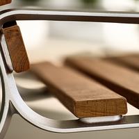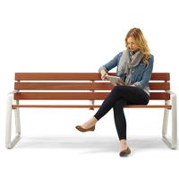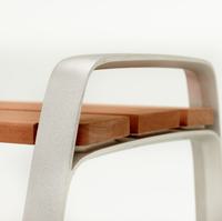The FGP bench is organic in form and sophisticated in its simplicity. The subtly concave curvature of the cast aluminum frames lends a soft and inviting appearance. The bench back height is designed to allow the user to rest an arm on it, offering a relaxed and welcoming seating experience.