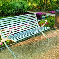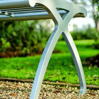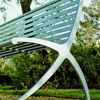 The Parc Vue Bench takes inspiration both from traditional cast iron furniture and asymmetric patterns found in nature. It achieves a delicate balance between the strength and lively gesture of its frame and the perceived lightness and linear order of its slatted seat. Parc Vue is a sculptural form with traditional roots yet a dynamic presence all its own.