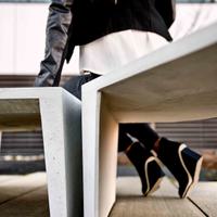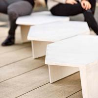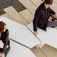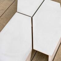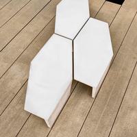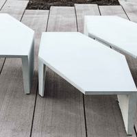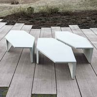 STRATA tables are unique six-sided elements, asymmetric in their geometry and open at the ends. They partner with STRATA to create sculptural configurations—stand-alone, in linear arrangements, or grouped together in cell-like structures. STRATA tables are intentionally open to interpretation, encouraging design experimentation, individuality and creativity.