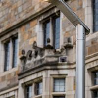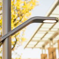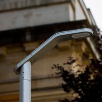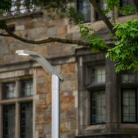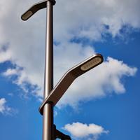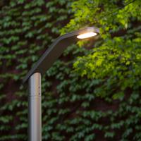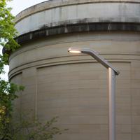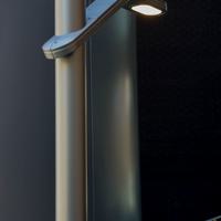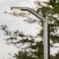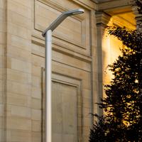 Luminaires mount at any height along the pole, and dual luminaires can mount back to back