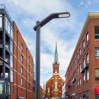 Torres lights are a beautiful complement to urban landscapes, improving, but not altering, the composition. Area lights are available in two sizes, 36 and 56 LED configurations, and with four light outputs, two drive currents, three distributions, and a clear or diffused lens to achieve an elevated visual experience across a variety of applications.
