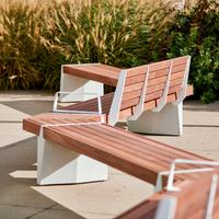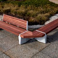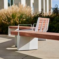 In STRATA Beam, Meldstone™ joins rich wood to provide dynamic contrast between cast and milled, hard and soft, and cool and warm materials. The line includes both stand-alone and connected modular benches, enabling designers to create customized configurations ranging from L-benches and U-benches, to fully enclosed polygons, to snaking asymmetric runs and mixed configurations in conjunction with singular STRATA Beam benches.