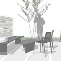 - Translucent fence (custom element) provides attractive seated privacy through subtle materiality lessening creative inhibitions by establishing an increased sense of retreat.