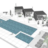 The Pool Deck is a sheltered recreational area adjacent to a pool or body of water. The space creates memorable experiences with purposeful placement of physical elements that fully engage the senses.