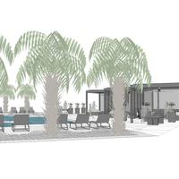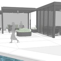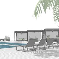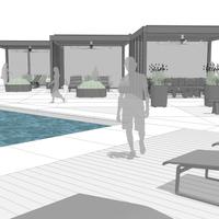 - Cochran chaise lounges and Cochran side tables provide an intimate lounging experience under the pergolas.