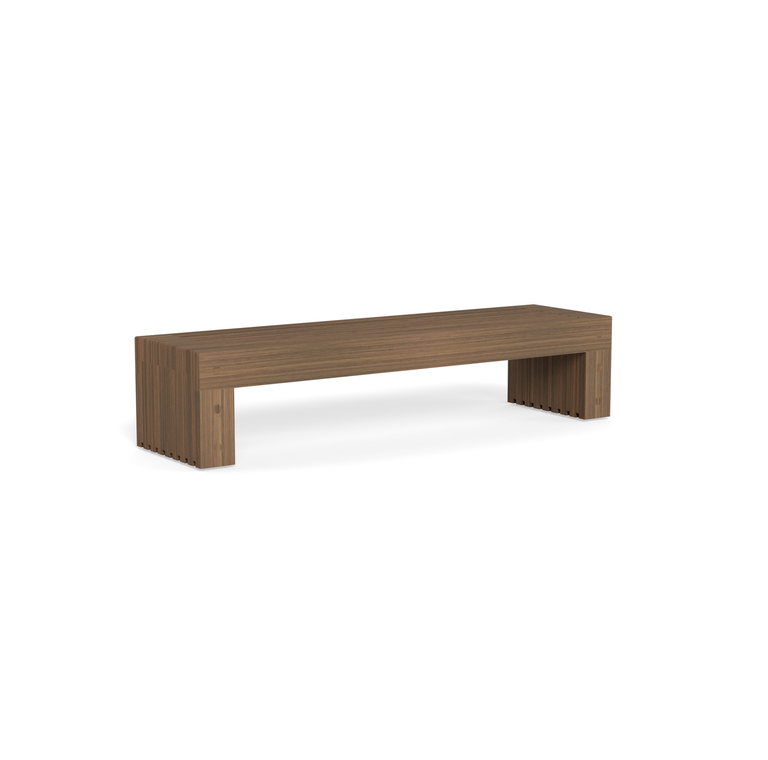 The upfront investment on the engineering side made the end product so much easier to install. The beauty is that the bench reads as one continuous element, almost floating above the landscape.
