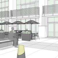 - Small seating oases are positioned away from the main walkway, safely bounded by elevated landscaping and Sentinel bollards.