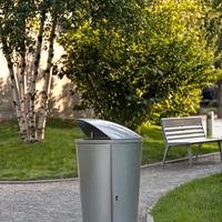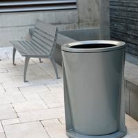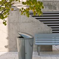 The Austin litter is an ideal complement to its companion bench as well as a handsome stand-alone solution. Shared Austin themes are reflected in the tapered conical body, ribbing and unique “bird’s mouth” lid which shields contents from view. The ribbing frames the unit’s side door, adding visual interest and providing functional support for the door hinges.