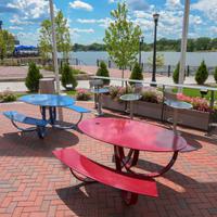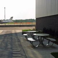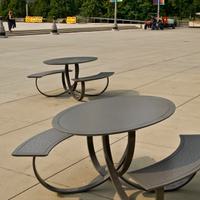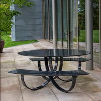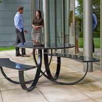 With graceful geometry and a lively spirit, Charlie contributes to the sense of movement in vibrant public spaces. Its table top and seats are floating planes—connected, lifted, and supported by the sweeping lines of legs. The oval form comfortably seats up to six people on two benches, supporting social interaction as people face one other directly across the table.