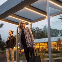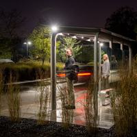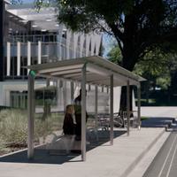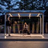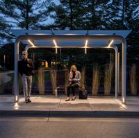 Connect 2.0 elevates the transit experience with a visual simplicity and quiet sophistication that complements surrounding architecture and landscaping. The modular shelter is available in multiple tempered glass and open panel configurations. A variety of roof options creates unique design statements while integrated, layered LED lighting subtly illuminates sidewalks, curbs, and the shelter's interior and immediate surroundings.