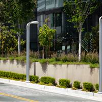 Samsung was attracted to the natural, park-like setting of 8.5 acres in Mountain View, California, for its research headquarters. The campus features open spaces and pathways meandering among the two office buildings and parking structures, and encourage employees to spend time working and relaxing outdoors.