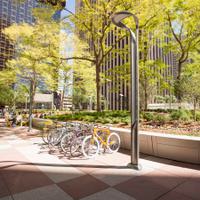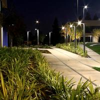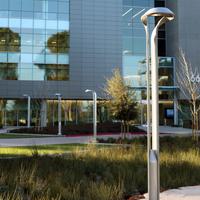 Google's Mountain View, California corporate campus shines with Landscape Forms Hi-Glo Area Lights and Lo-Glo Path Lighting.