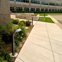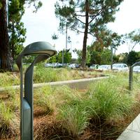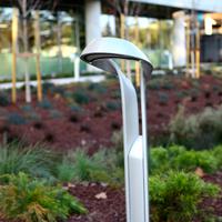 Google's Mountain View, California corporate campus shines with Landscape Forms Hi-Glo Area Lights and Lo-Glo Path Lighting.