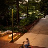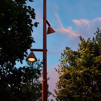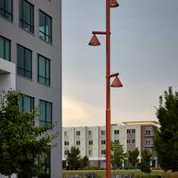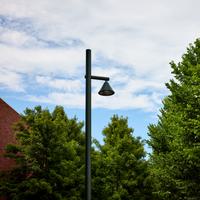 Moment accent light merges sleek modernism with robust functionality. Designed for precision, the Moment accent light is adjustable and can tilt up to 50 degrees and lock in 10-degree increments, making it ideal for illuminating specific areas in a variety of contemporary and classic settings. Lens heights at 12, 14, 16, 20, and 25 feet provide maximum flexibility, with the mounted luminaries offered in single, back-to-back, or spiral variations.