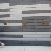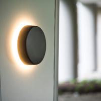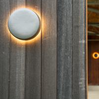 Motive is a sophisticated family of lights that blurs the line between indoor and outdoor lighting to create out-of-the-ordinary settings. The dimmable wall mounted light has a diffused lens and emits light in 360 degrees on a facade. It is ADA compliant, giving lighting designers and architects more flexibility for placement on a building.