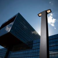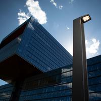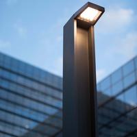 Profile creates beautiful and intentional light emanating from a refined, minimalist design. The Profile Area Light has a single or dual-mounted luminaire mounted atop an architectural I-beam column. Modular add-on sections customize the luminaire's height and directionality. Further tailor the area light’s performance and aesthetic with optional grazing or foot lights.