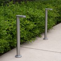 Designed by Justin Champaign, Motive features some firsts for Landscape Forms, including an outdoor floor lamp and fixtures featuring a hidden light source and clear lens, which create sculptural light effects and an interesting visual experience.